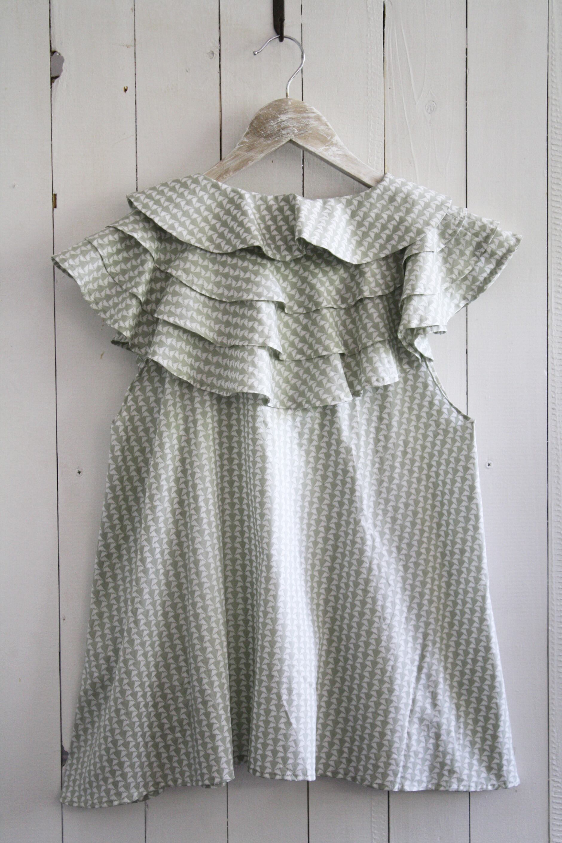 4段に重なった襟が可愛い、フリルブラウス。リバティ社の上質なコットンで作りました。